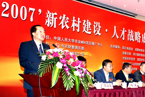 2007新農村建設·人才戰略成都報告會(huì ),四川省畜科飼料有限公司董事長(cháng)鄺聲耀先生在會(huì )上發(fā)言。