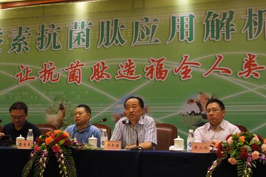 農業(yè)部飼料工業(yè)中心副主任、國家飼料工程技術(shù)研究中心副主任、中國農業(yè)大學(xué)教授譙仕彥博士在會(huì )上做了《抗菌肽研究進(jìn)展與應用趨勢》的報告。闡述了抗菌肽的機理和作用,抗菌肽是生物體內經(jīng)誘導產(chǎn)生的一種具有生物活性的小分子多肽,分子量在2000~7000左右,由20~60個(gè)氨基酸殘基組成??咕牡目咕V比傳統抗生素更寬,既有抗革蘭氏陽(yáng)性菌和革蘭氏陰性菌的作用,又有抗真菌和病毒的作用??咕牡淖饔门c其對病原菌細胞膜的迅速破壞相關(guān),并且抗菌肽的作用不涉及特定的靶位,完全是陰陽(yáng)離子的物理作用,而不改變細菌表面的結構和帶電性能,因此抗菌肽幾乎不產(chǎn)生抗藥性。譙博士還詳細講解了抗菌肽在各個(gè)領(lǐng)域的應用,其中特別分析了在動(dòng)物上應用抗菌肽的實(shí)驗數據和研究成果。