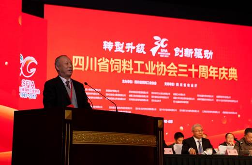 來(lái)自農業(yè)部、中國飼料協(xié)會(huì )、省農業(yè)廳的領(lǐng)導、行業(yè)知名專(zhuān)家及企業(yè)代表等800余人親臨盛會(huì )。四川省飼料工業(yè)協(xié)會(huì )會(huì )長(cháng)陳代文教授致辭并作三十年發(fā)展總結報告,中國飼料工業(yè)協(xié)會(huì )會(huì )長(cháng)李德發(fā)院士、北京飼料工業(yè)協(xié)會(huì )會(huì )長(cháng)汪秀艷先后發(fā)言。
