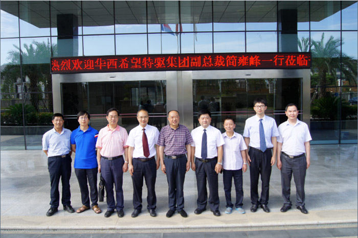 6月15日快訊:華西希望·特驅集團副總裁簡(jiǎn)雍鋒一行蒞臨華神生物交流參觀(guān)。簡(jiǎn)總對華神一流的設備和一流的生產(chǎn)工藝贊不絕口,希望加強更進(jìn)一步的合作。當日,華神公司董事長(cháng)鄺聲耀研究員也受邀來(lái)到特驅集團總部與華西希望·特驅集團王德根總裁率領(lǐng)的高層團隊舉行圓桌會(huì )議。