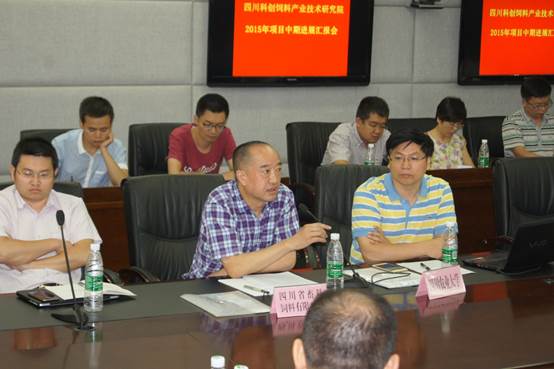 您當前位置: 網(wǎng)站首頁(yè) > 新聞媒體 > 畜科動(dòng)態(tài)2015年7月28日上午,四川科創(chuàng )飼料產(chǎn)業(yè)技術(shù)研究院在四川農業(yè)大學(xué)溫江校區舉行了項目中期進(jìn)展匯報會(huì )。理事長(cháng)鄺聲耀、院長(cháng)吳德以及四川農業(yè)大學(xué)、四川省畜牧科學(xué)研究院、四川省畜科飼料有限公司、四川新希望畜牧科技有限公司、通威股份有限公司、四川鐵騎力士實(shí)業(yè)有限公司、四川乾坤生物科技有限公司七家共建單位項目組負責人、成員共計35人參會(huì )。