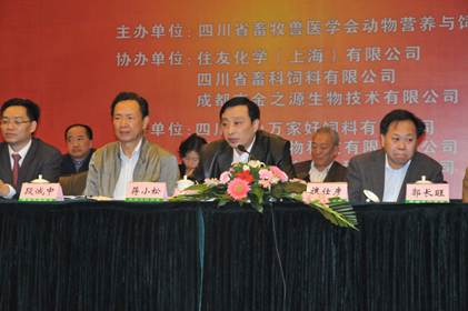 四川農業(yè)大學(xué)周小秋教授、理事長(cháng)首先致歡迎辭:四川省畜牧獸醫學(xué)會(huì )動(dòng)物營(yíng)養與飼料學(xué)分會(huì )經(jīng)過(guò)多年的發(fā)展,目前共有成員351名,已成功舉辦學(xué)術(shù)年會(huì )4次,開(kāi)展會(huì )議專(zhuān)題報告20余個(gè),出版會(huì )訊30期。在全體會(huì )員和會(huì )員單位的共同努力下,動(dòng)物營(yíng)養與飼料學(xué)分會(huì )已為推動(dòng)我國養殖業(yè)實(shí)現規范、低碳、環(huán)保和高效動(dòng)物生產(chǎn)做出了重要貢獻。周教授特別感謝本次學(xué)術(shù)年會(huì )的協(xié)辦單位住友化學(xué)(上海)有限公司、四川畜科公司和成都金枝源生物技術(shù)有限公司對分會(huì )的鼎力支持,并祝愿四川飼料工業(yè)和飼料企業(yè)的明天更加美好。